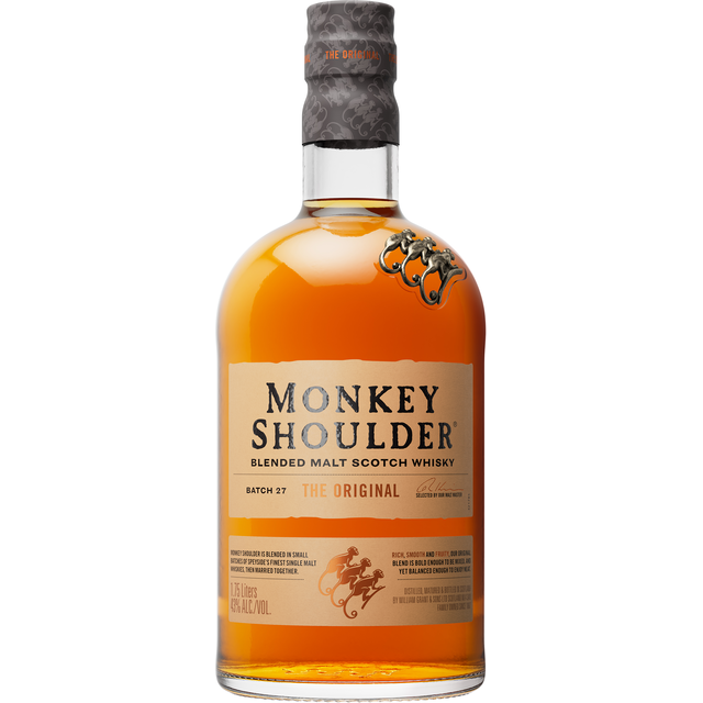Monkey Shoulder is a blend of Speyside single malt Scotch whiskies which are married together for flavor and consistency. The richness and vibrancy combine with fruity aromas and mellow vanilla, making it perfect for mixed drinks and cocktails.